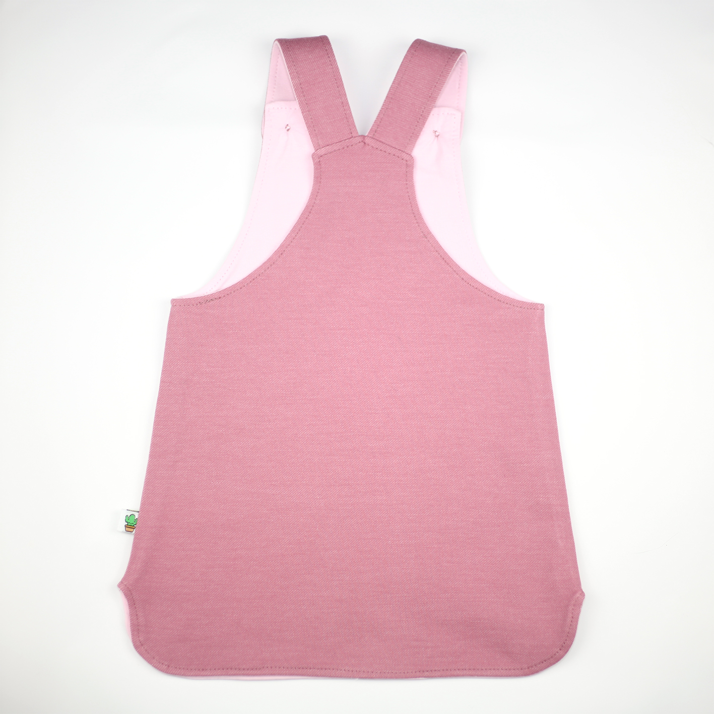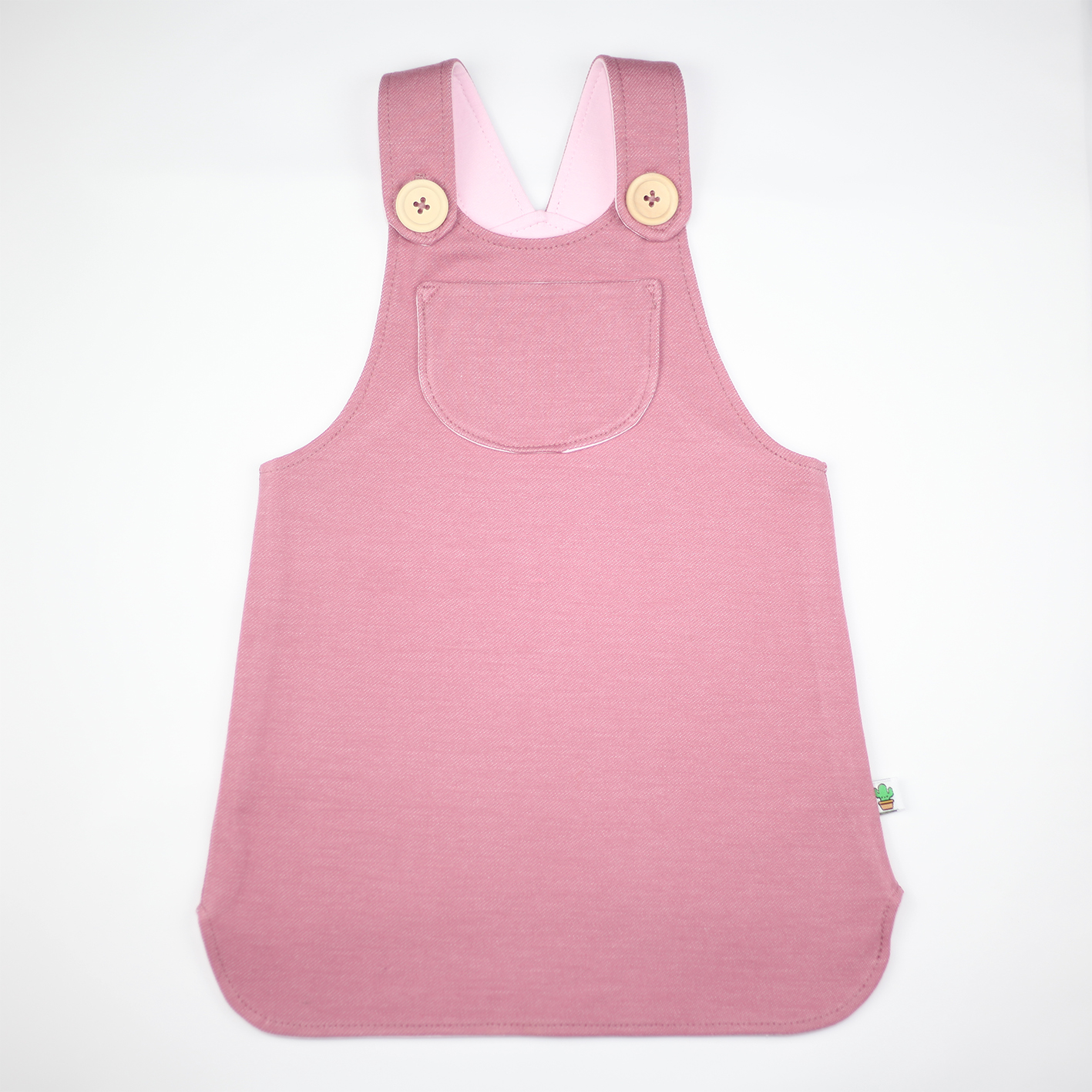 Deze overgooier in denim look is comfortabel en geweldig om in te spelen. Staat mooi met de comfy sweater of een basic t-shirt. Het jurkje is dubbel gevoerd en heeft een geknoopte sluiting voor met houten knoopjes.